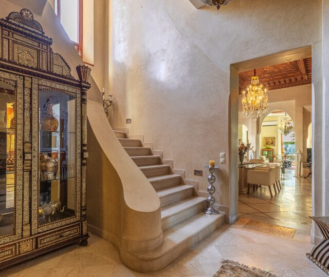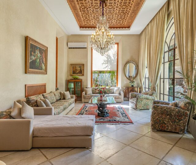 - Nichée au cœur du prestigieux domaine du Golf Amelkis, cette somptueuse & élégante villa incarne le raffinement du style oriental et le confort moderne. Édifiée sur un magnifique terrain de 1 000 m², elle offre une superficie habitable d’environ 750 m², garantissant un cadre de vie exceptionnel, sans vis vis .